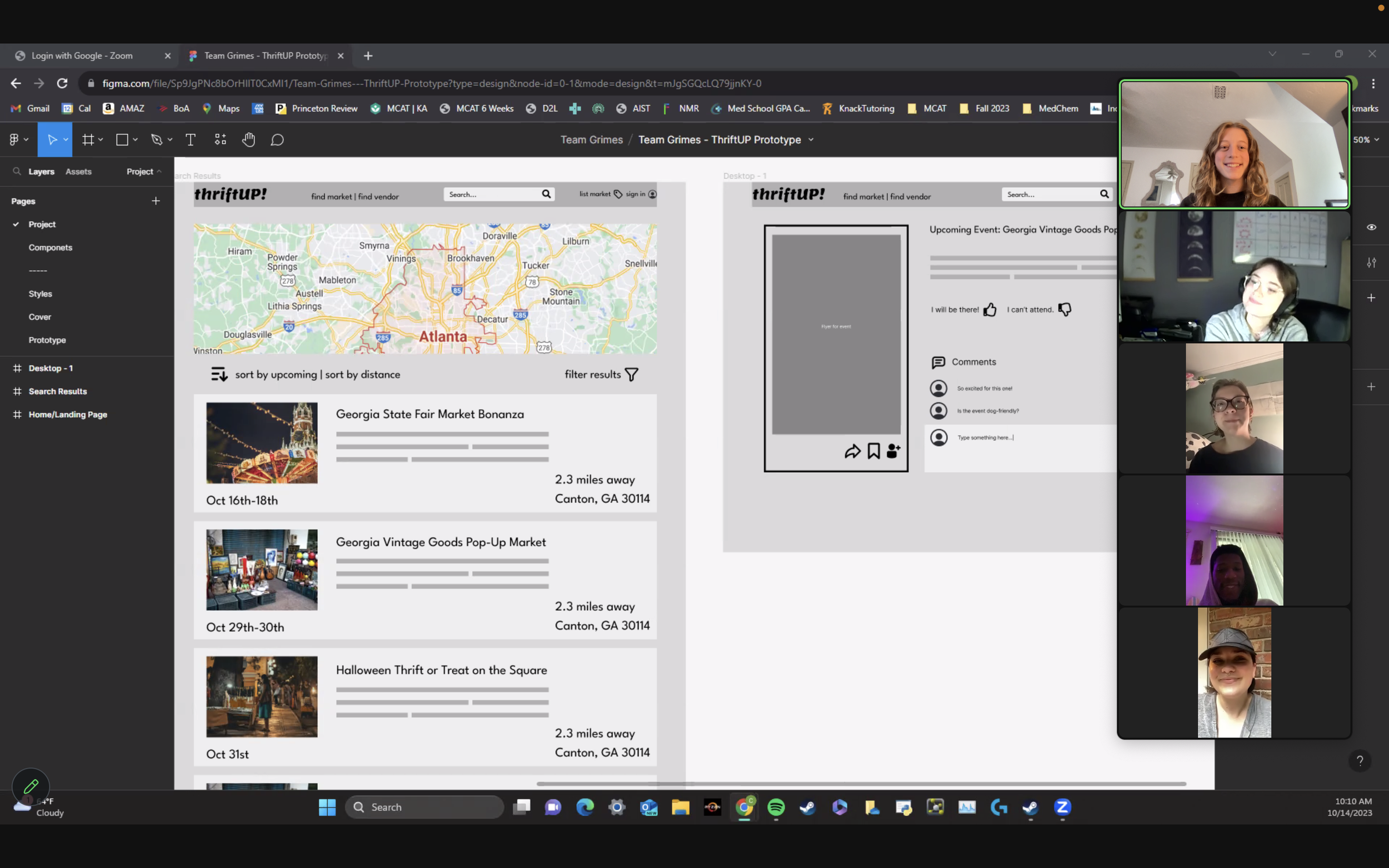 At the beginning of the first week, we started with our stand-up, which is a 15-minute meeting that happens every 2 days to go over what we have each accomplished and what we need to complete before the next stand-up. We began by creating a low-fidelity mock-up in Figma to gain a basic understanding of the direction we were heading. Later in the week, we conducted our interviews where we asked our participants questions about their habits in attending markets and gathered their thoughts on our low fidelity mock up.